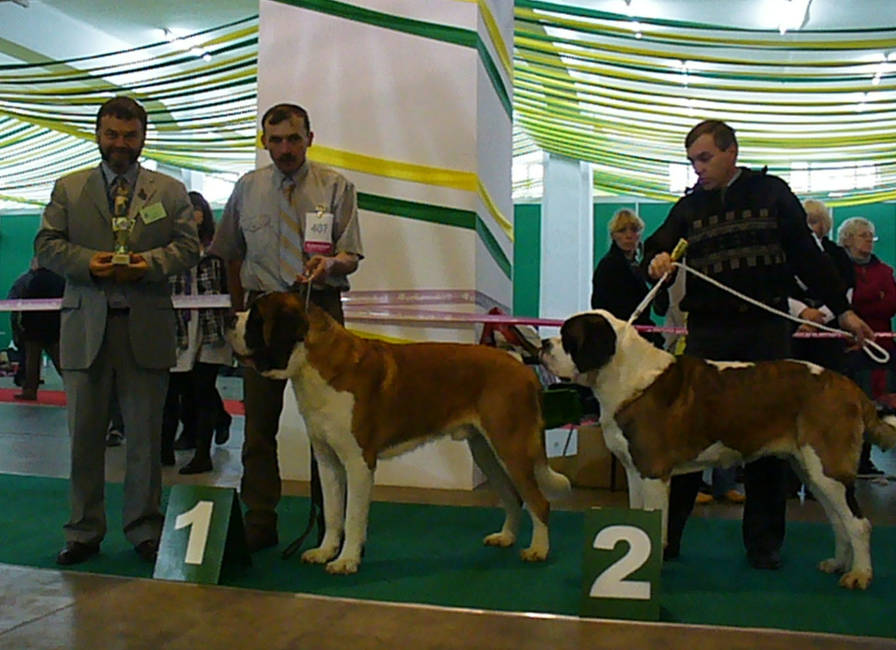 Na Wystawie Klubowej Molosów w Warszawie wystawialiśmy dwa długowłose bernardyny: